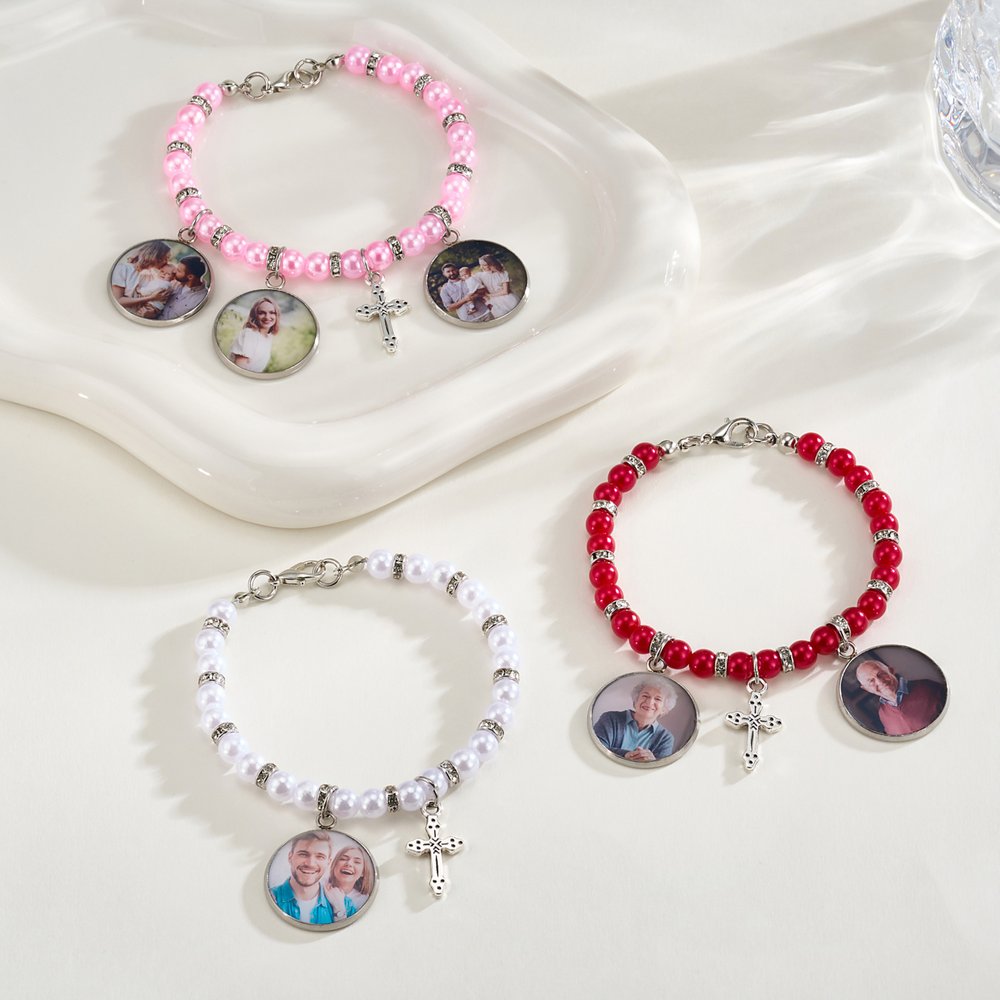 Bei diesem Armband liegt der Schwerpunkt auf der Erinnerung an den Glauben und der Verbindung mit Emotionen. Es kann mit 1-5 persönlichen Fotos angepasst werden, die wertvolle Momente der Familie, geliebter Menschen oder des Verstorbenen festhalten, so dass die Erinnerung und der Glaube Sie jederzeit begleiten können. Es ist mit einem exquisiten silbernen Kreuz-Anhänger im Vintage-Stil gepaart, der die Kraft des frommen Gebets vermittelt.