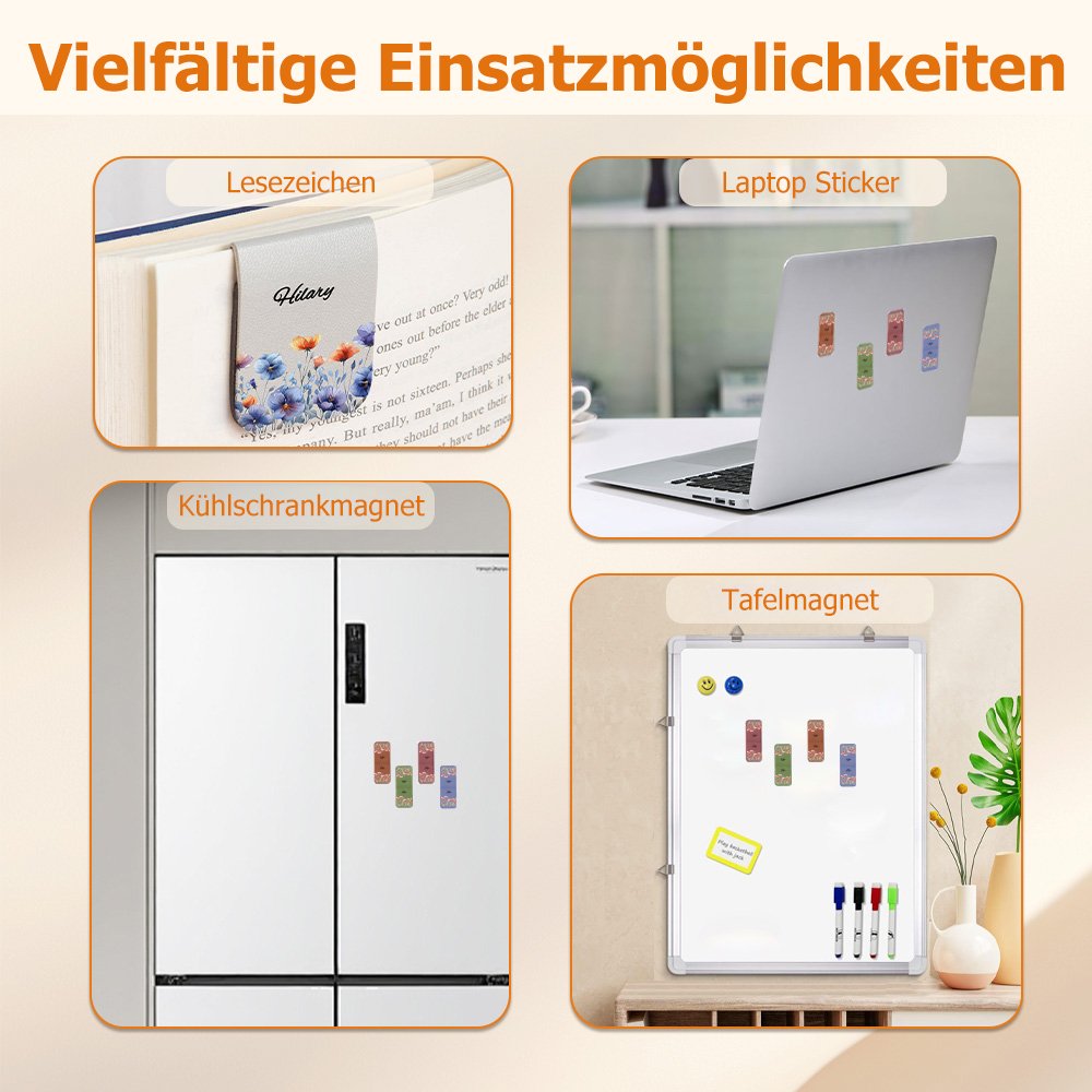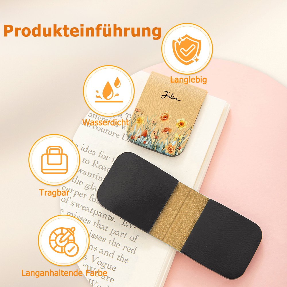 Unsere Lesezeichen werden aus erstklassigen Materialien gefertigt, die sich angenehm anfühlen und durch ihre besondere Textur überzeugen. Dank eines integrierten Magneten bieten sie eine sichere Befestigung, ohne das Buch zu beschädigen. So vermeiden sie die typischen Nachteile herkömmlicher Lesezeichen, die leicht verrutschen oder die Seiten beeinträchtigen können, und gewährleisten gleichzeitig eine optimale Kombination aus Benutzerfreundlichkeit und Schutz für Ihr Buch.
